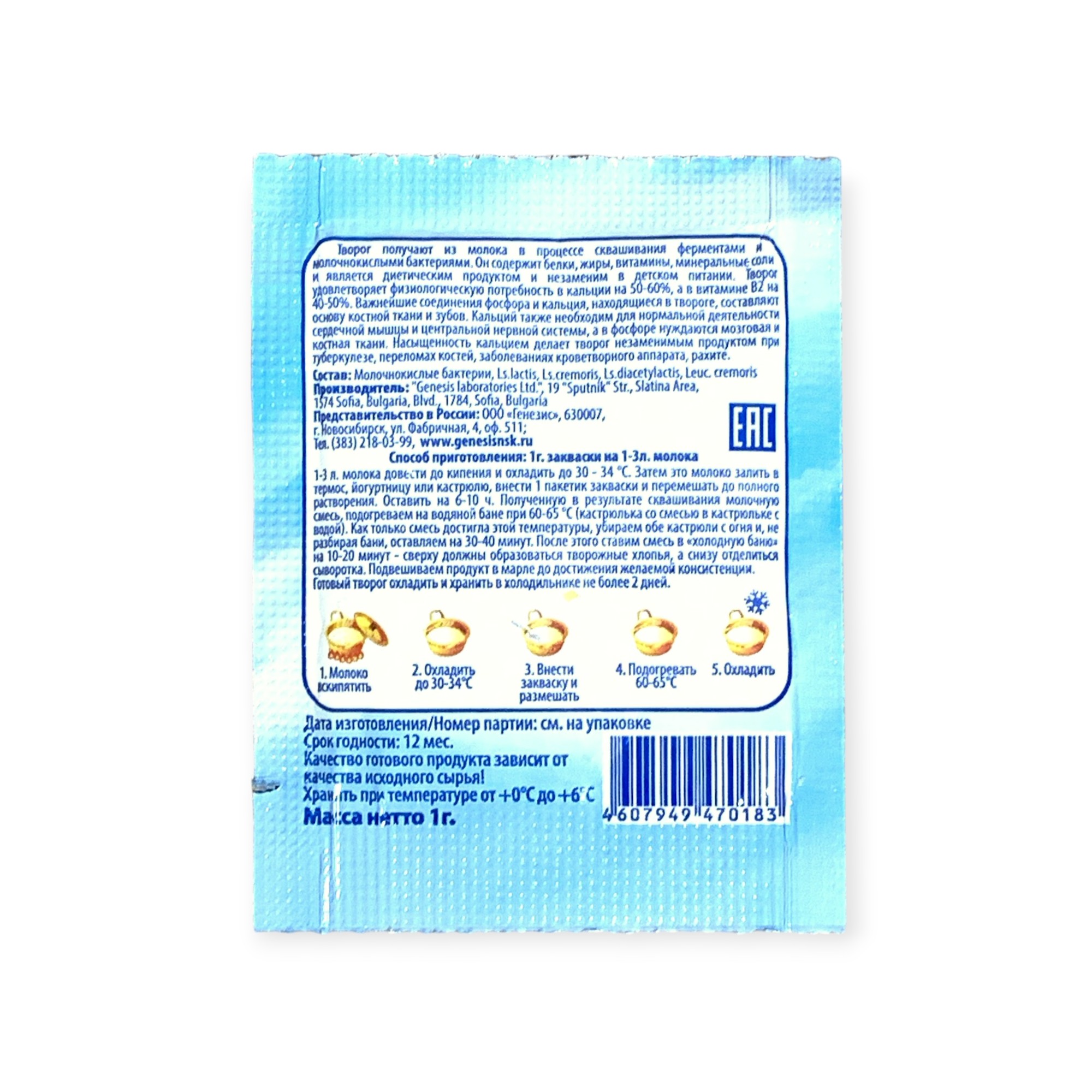 Закваска Творожок Genesis, 1 пакет от 100 руб. с доставкой. Пункт выдачи в Краснотурьинске. Интернет магазин по сыроделию. Всё всегда в наличии.